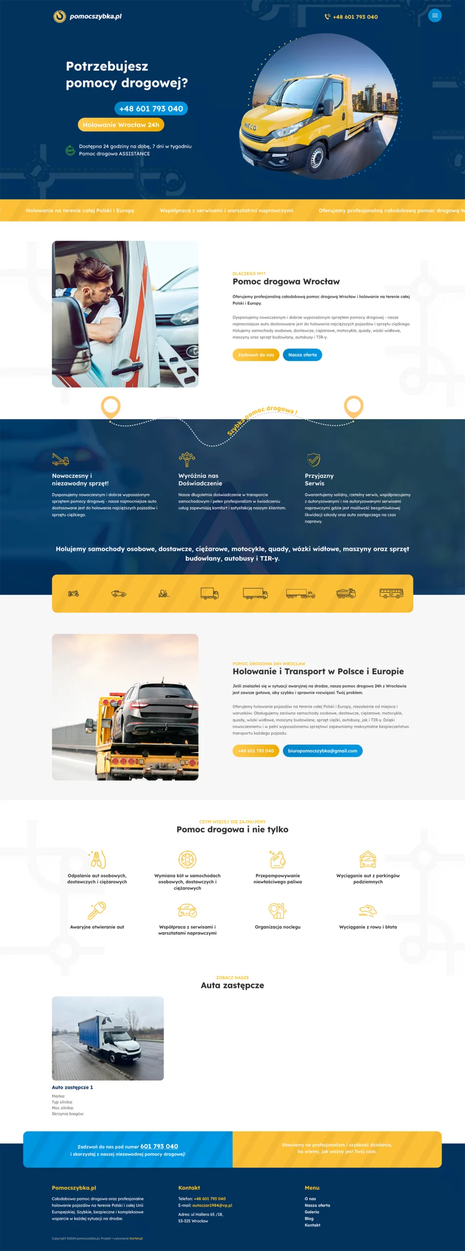 Stworzenie strony internetowej dla firmy świadczącej usługi pomocy drogowej. Realizujemy także działania marketingowe dla firmy pomoc drogowa Zgorzelec / pomoc drogowa Niemcy.